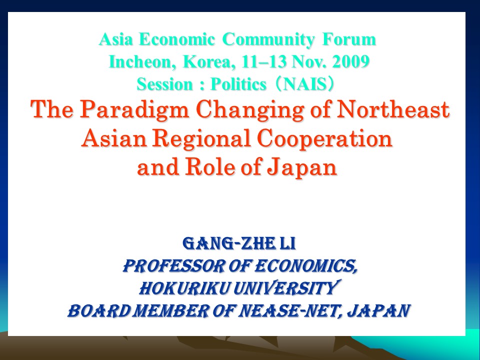 AECF2009_23. The Paradigm Changing of Northeast Asian Regional Cooperation and Role of Japan (Gang Zhe LI)